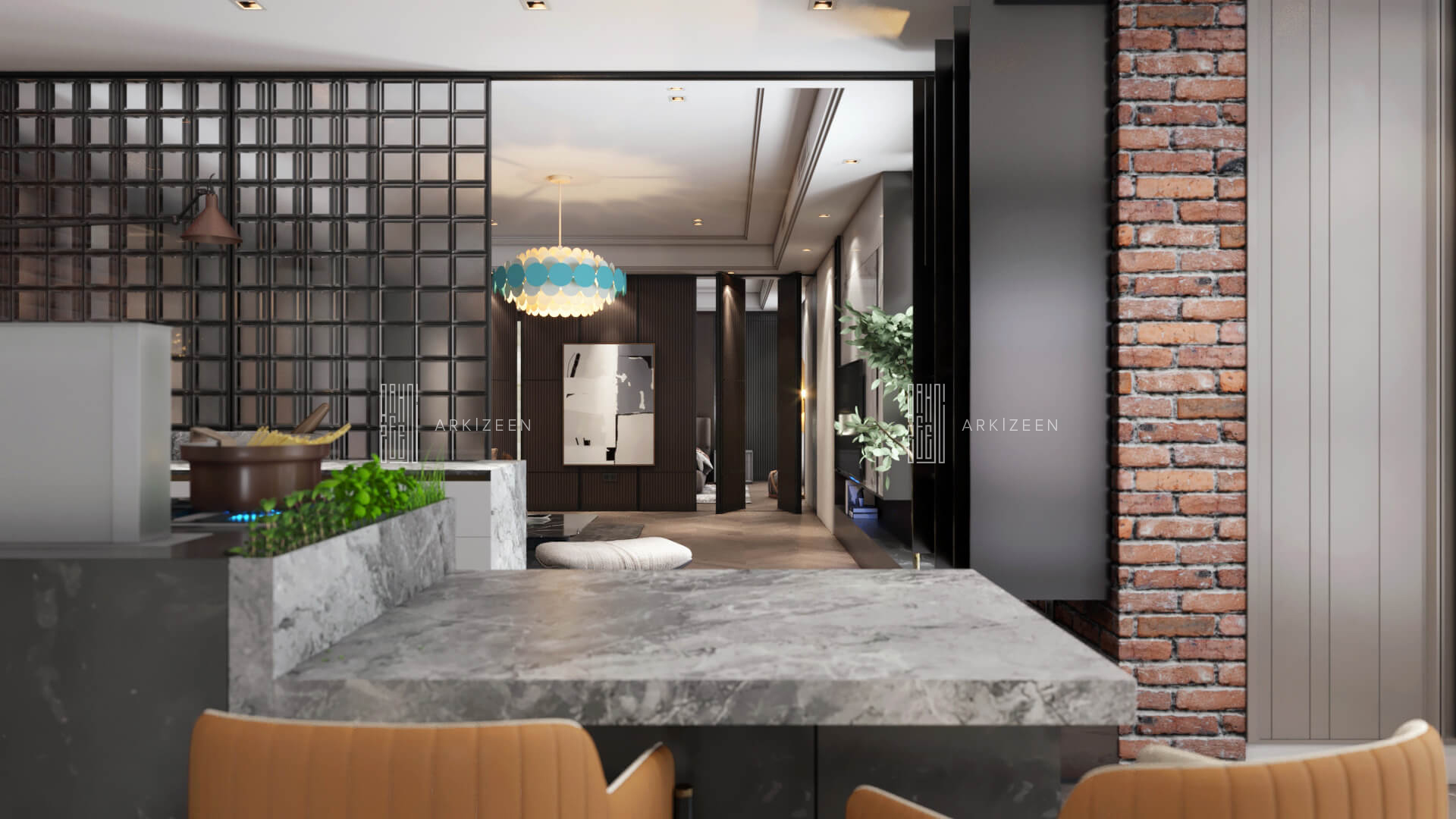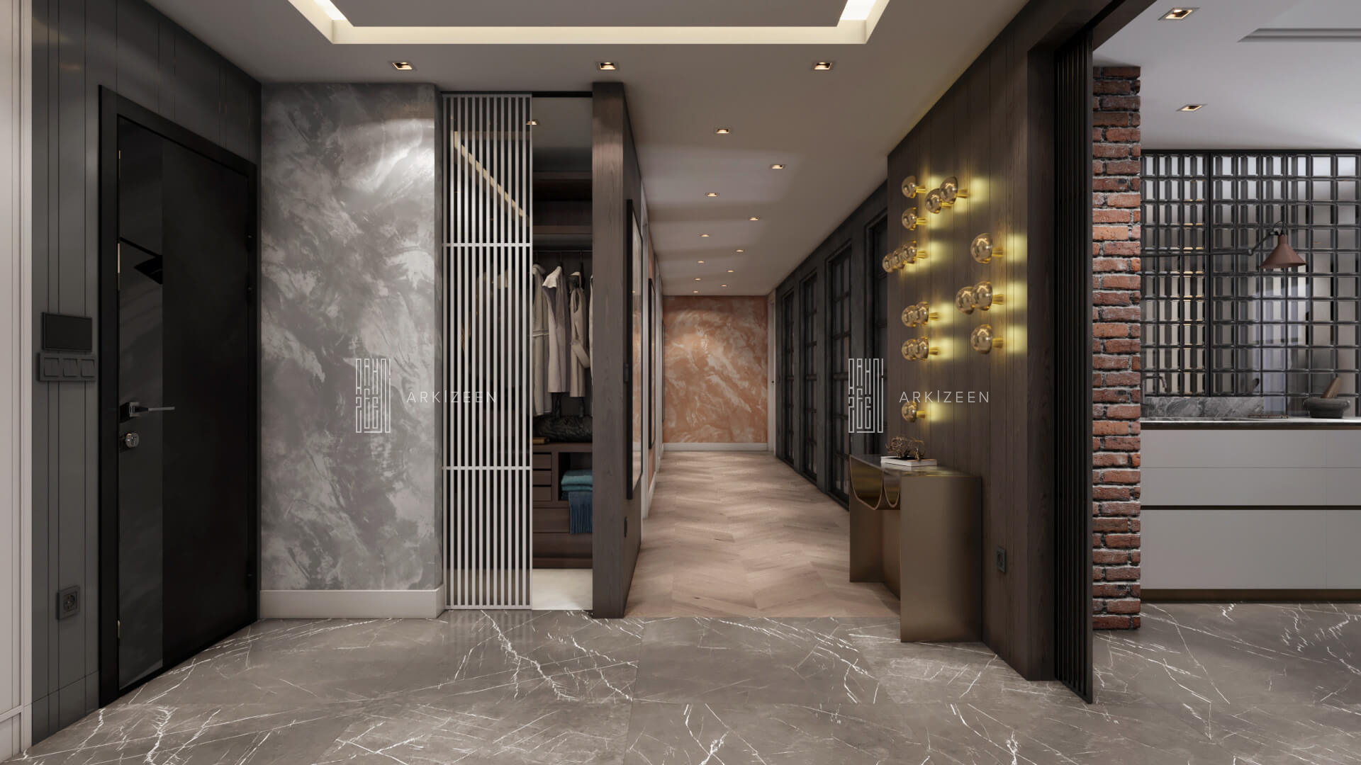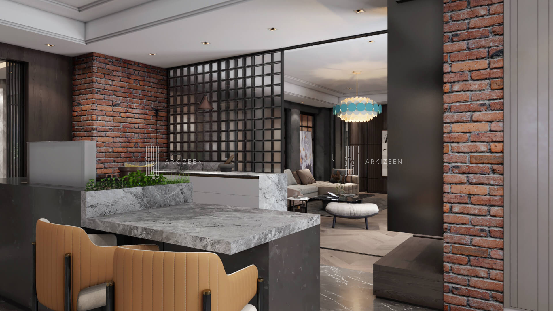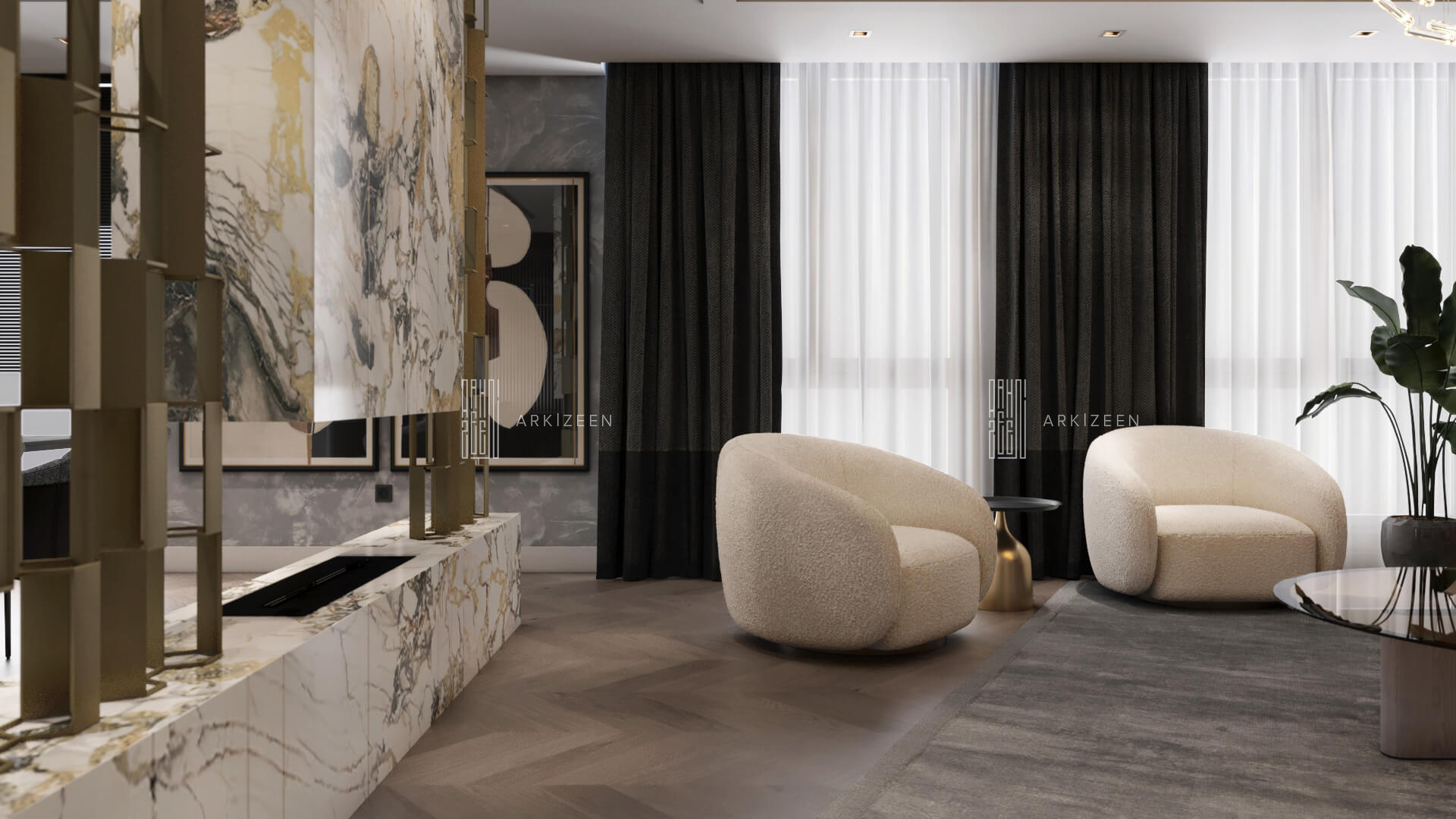 Modern, açık plan anlayışı ile tasarlanan bu 3+1 daire; Loft stilini metal, ahşap ve mermer malzemelerinin yardımı ile mekana aktarmaya çalıştık. Ekip olarak en önemli hedeflerimizden biri ise mekana yaşanmışlığı verebilmektir. Duvar tasarımları ile mekanları birbirine bağlamak ve evin özel alanlarını kullanıcıya daha geniş alanlar oluşturmak için tekrar düzenledik.