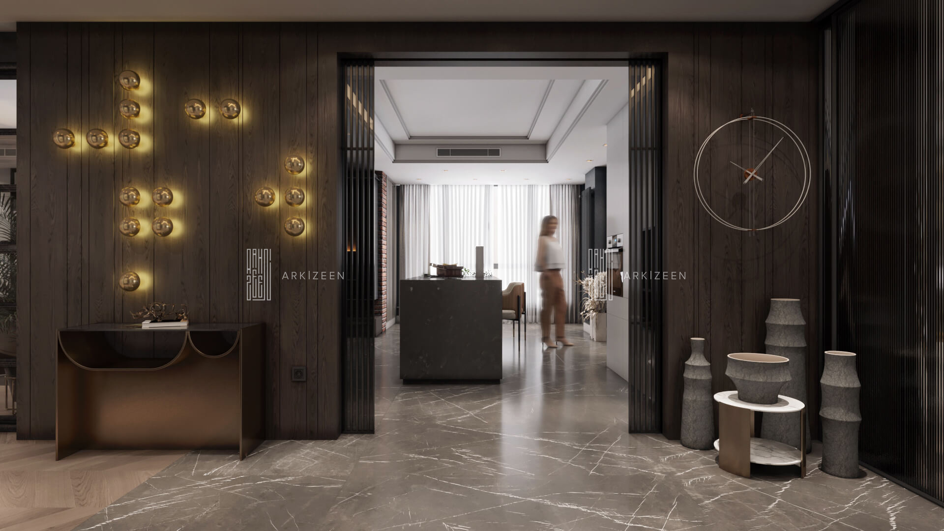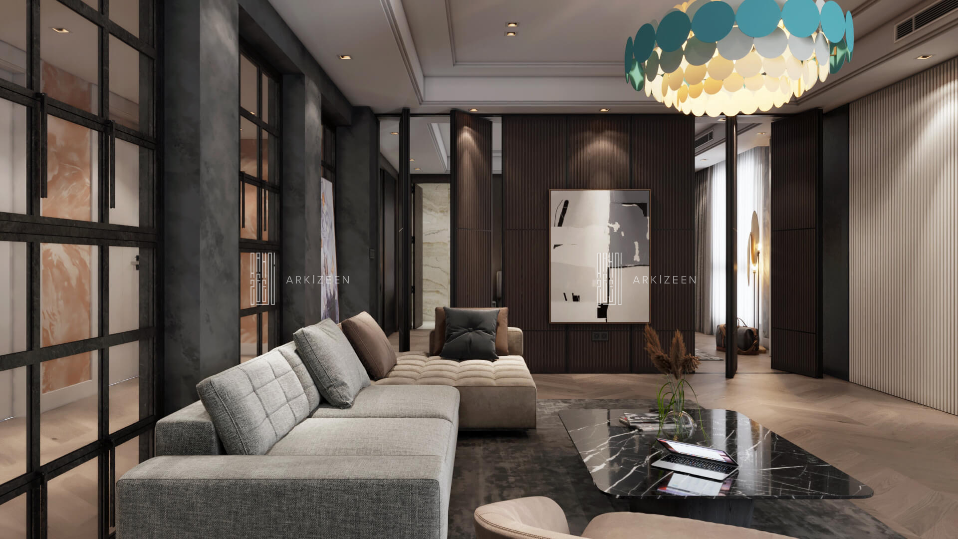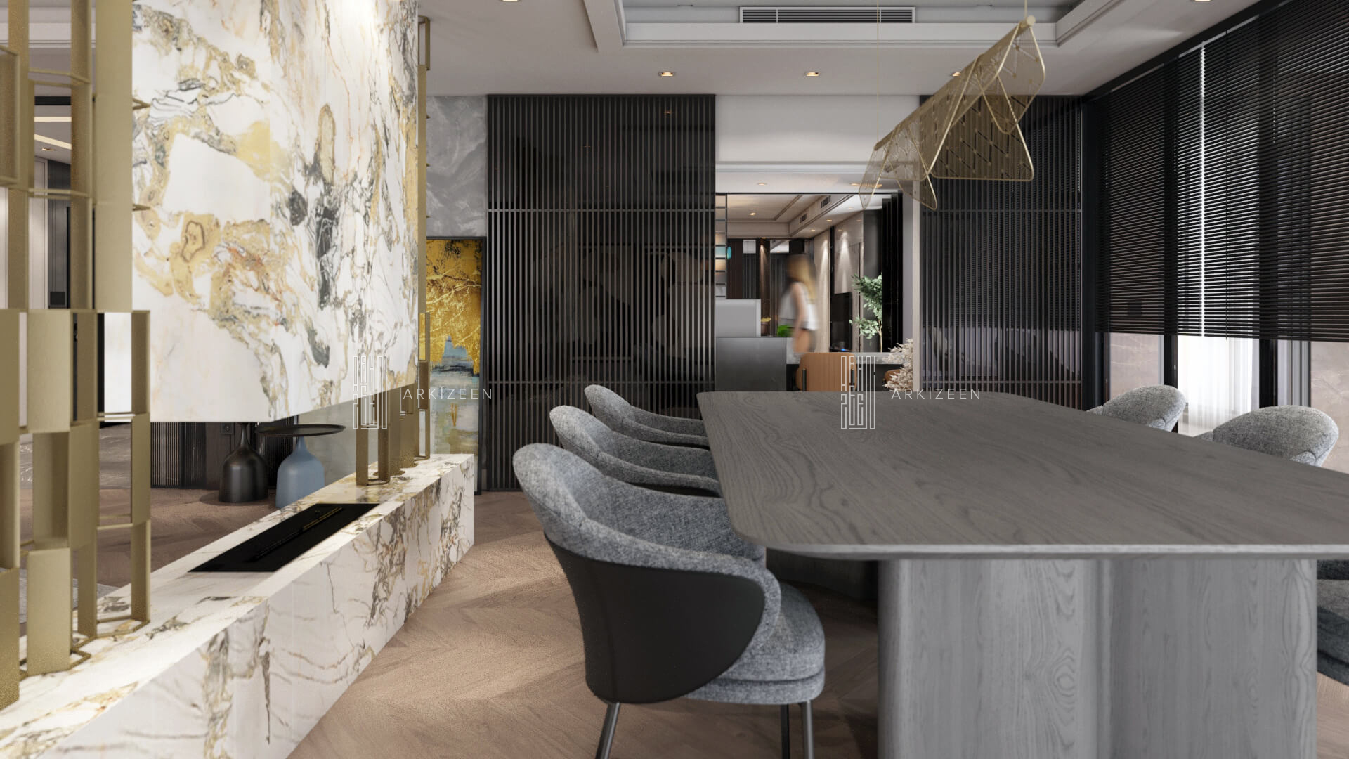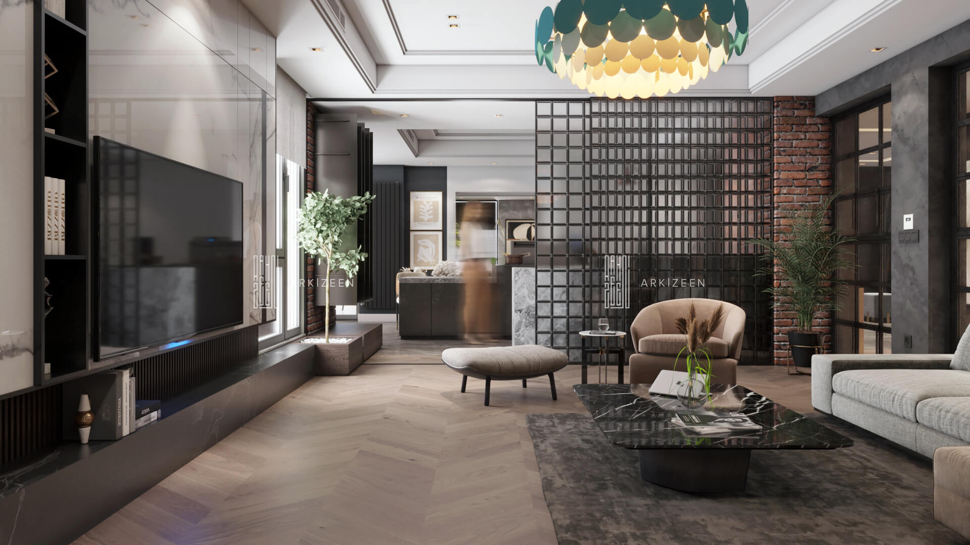 Modern, açık plan anlayışı ile tasarlanan bu 3+1 daire; Loft stilini metal, ahşap ve mermer malzemelerinin yardımı ile mekana aktarmaya çalıştık. Ekip olarak en önemli hedeflerimizden biri ise mekana yaşanmışlığı verebilmektir. Duvar tasarımları ile mekanları birbirine bağlamak ve evin özel alanlarını kullanıcıya daha geniş alanlar oluşturmak için tekrar düzenledik.