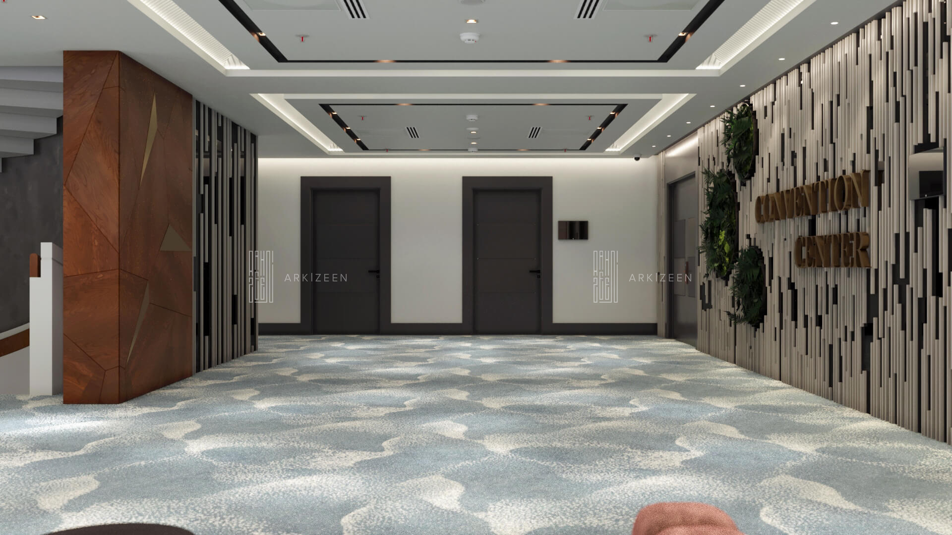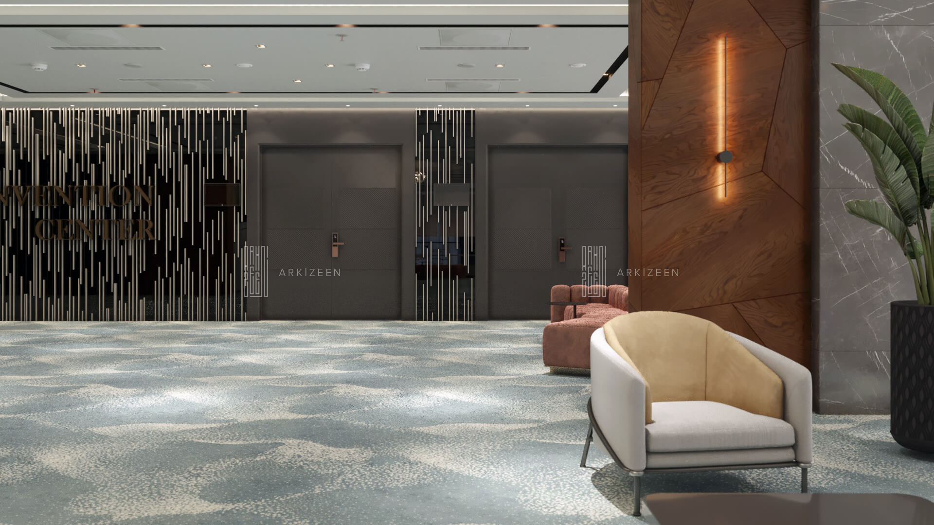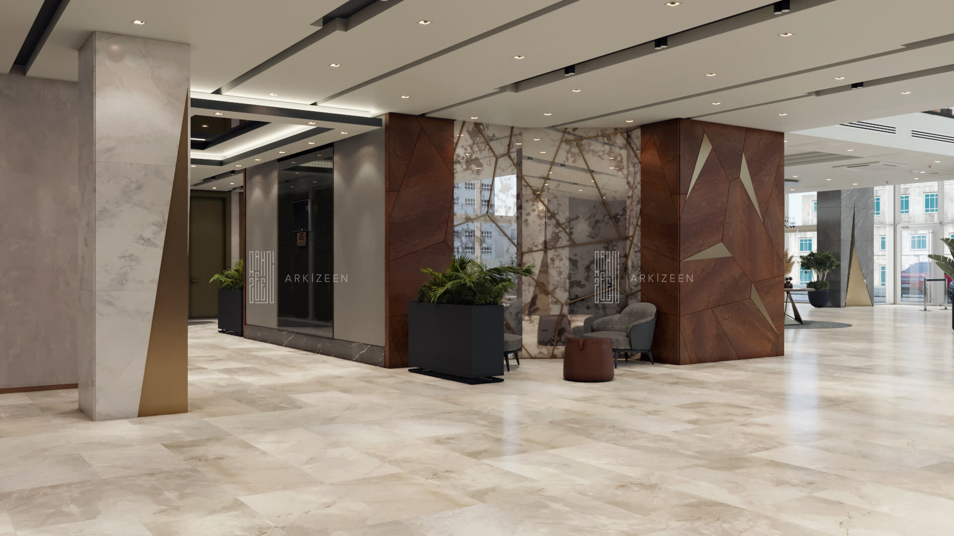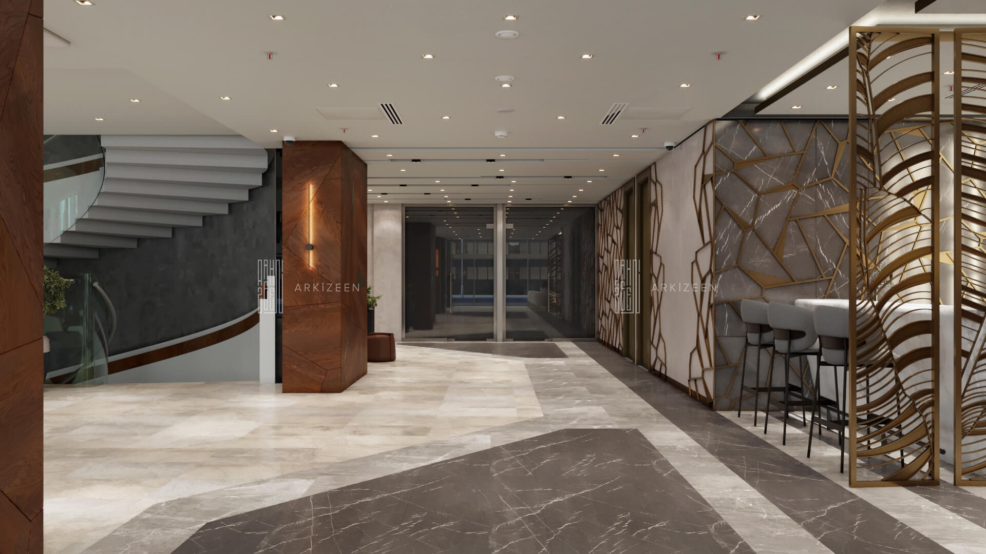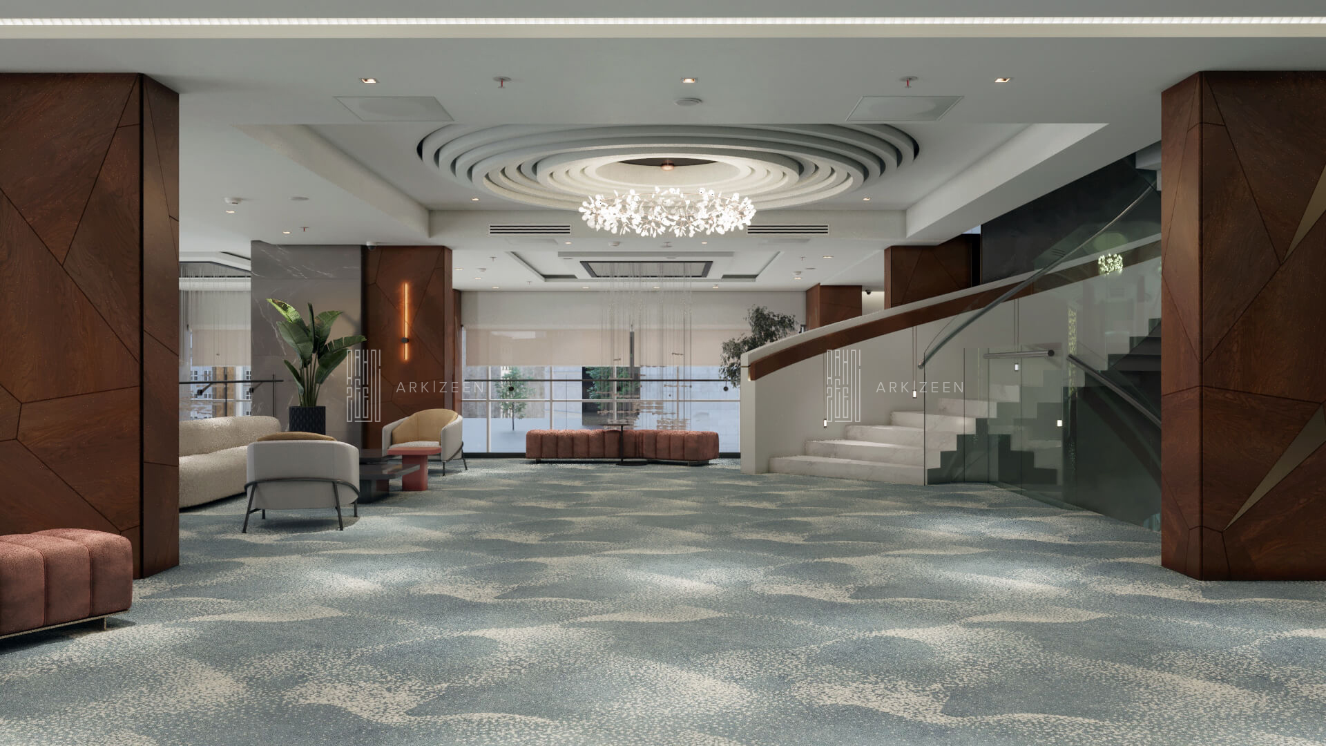 Resepsiyon alanının yeri değiştirilerek lobby düzeninin ana planlanması sağlanmıştır. Resepsiyon alanı, daha ferah bir görünüme sahip olması ile birlikte misafirleri de direk karşılaması hedeflenmiştir. Lobby alanı daha fazla ışığın girmesi için adımlar atılmıştır. Ofis kısımları tekrar düzenlenmiştir. Kolon tasarımlarında ise konsepti yansıtmasına yardımcı olacak mermer ve ahşap malzemenin dokusu yoğun bir şekilde kullanılmıştır. Zeminde kullanılan mermer yerinde bırakılmış ama tüm iç mekandaki unsurlar değiştirilmiştir. Otelin lobby ve asma katı için eski çizgi ve renklerinden çıkarak, yeni renk konsepti ile tasarım detayları düşünülmüştür. Yeni oturum alanlarının eklenmesi, Lobby bar alanının ön plana çıkarılması ve mekana kazandırılması, mevcut merdivenin ufak tasarım dokunuşları ile ortaya çıkarılması sağlanmıştır.